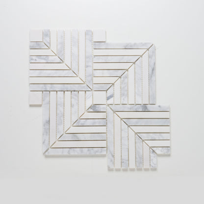 Parallax bends geometry into rhythm—each marble strip dancing in perfect alignment to create a hypnotic sense of movement. Available in Matcha, Noir, and Olympus, it’s where classic meets kinetic.