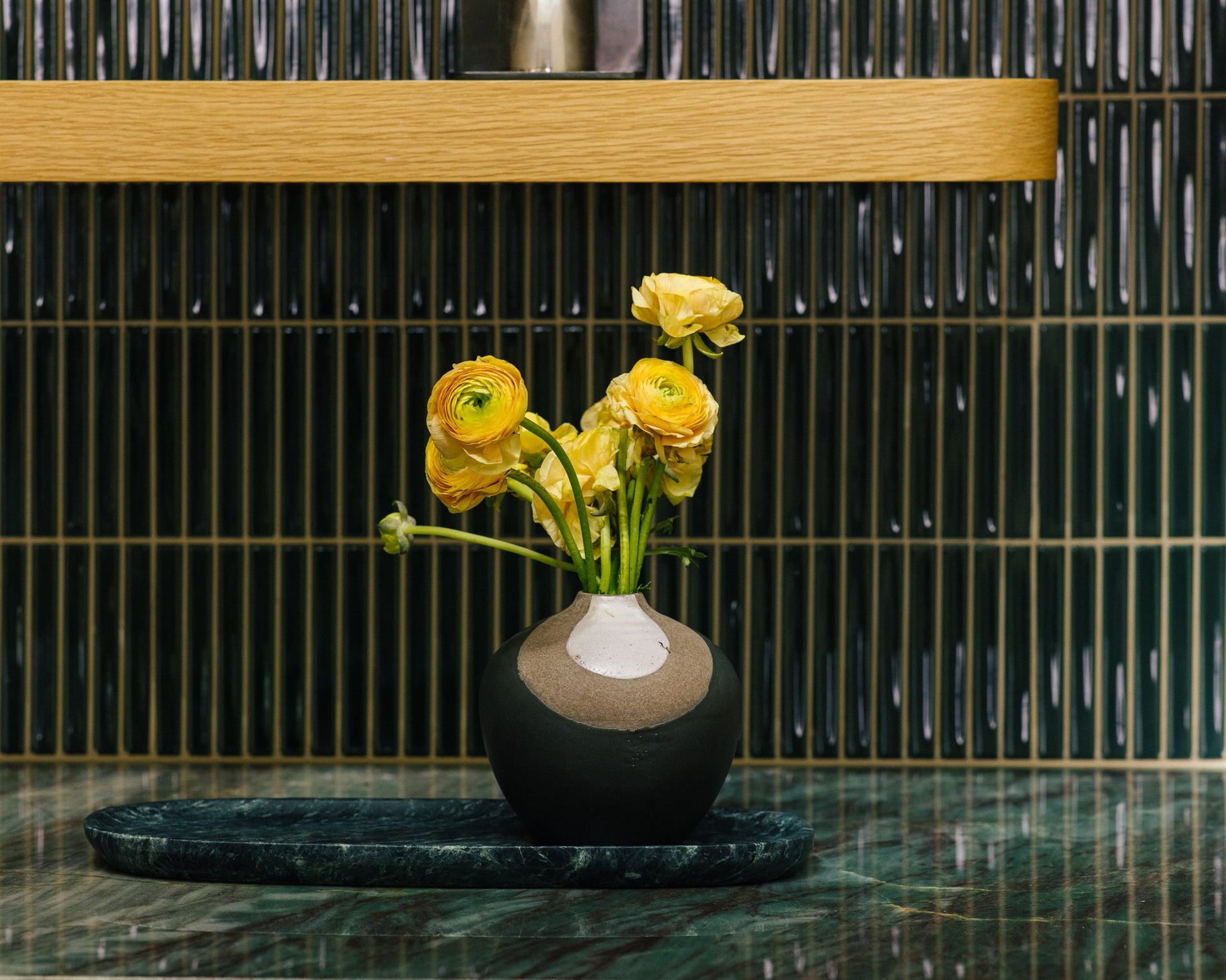 Defined by its deep groves and intricate white vines, Viridian brings a sense of grounded elegance to any setting. Each piece is carved from solid marble, revealing subtle variations that make every surface unique.